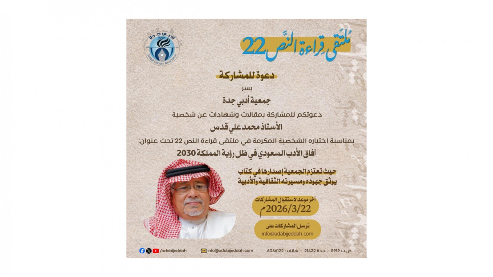«أدبي جدة» يكرم محمد علي قدس ويصدر كتاباً يوثق مسيرته.